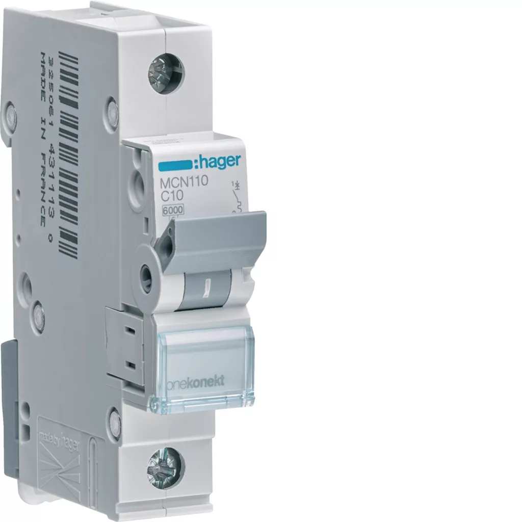 Hager MCN110 kismegszakító – 1 pólusú, C karakterisztika, 10A, 6kA (1 modul)