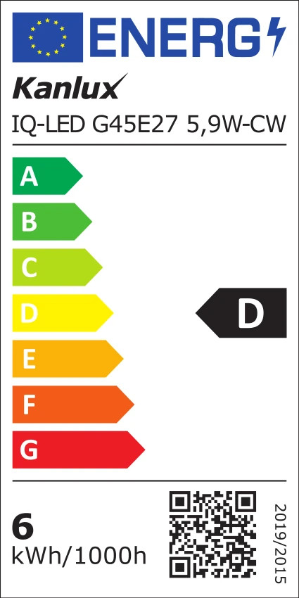 Kanlux 36699 IQ-LED G45E27 5,9W-CW fényforrás, E27 foglalat, 806lm, 5,9W teljesítmény, 25000h élettartammal, 220-240V, 6500K (Kanlux 36699)