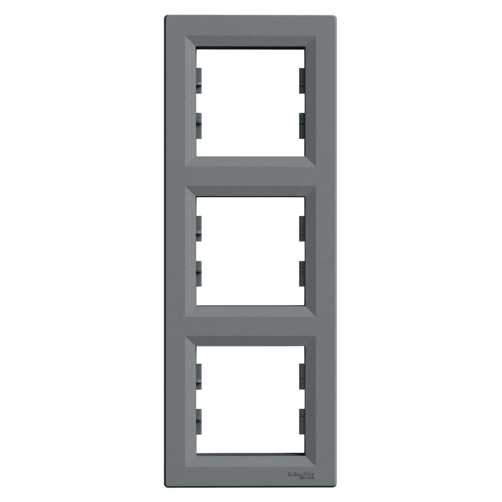 A Schneider Electric Asfora függőleges kerete EPH5810362, acél színű, 3-as takarókeret. A felületkialakítása fényes és egy elegáns és felső kategóriás kapcsoló érzetét kelti. IP20-as védettséggel rendelkezik. A keret ABS-ből (akrilnitril-butadién-sztirol) áll, amely a lehető legnagyobb mértékben ellenálló. A keret emellett zöld prémium termék is. Higanymentes és nehézfémmentes, így teljesen környezetbarát. A karcsú és elegáns formatervezésű, 6 féle színben - fehér, bézs, bronz, antracit, alumínium és acél - kapható takarókeret, minden belsőépítészeti igényt kielégít.