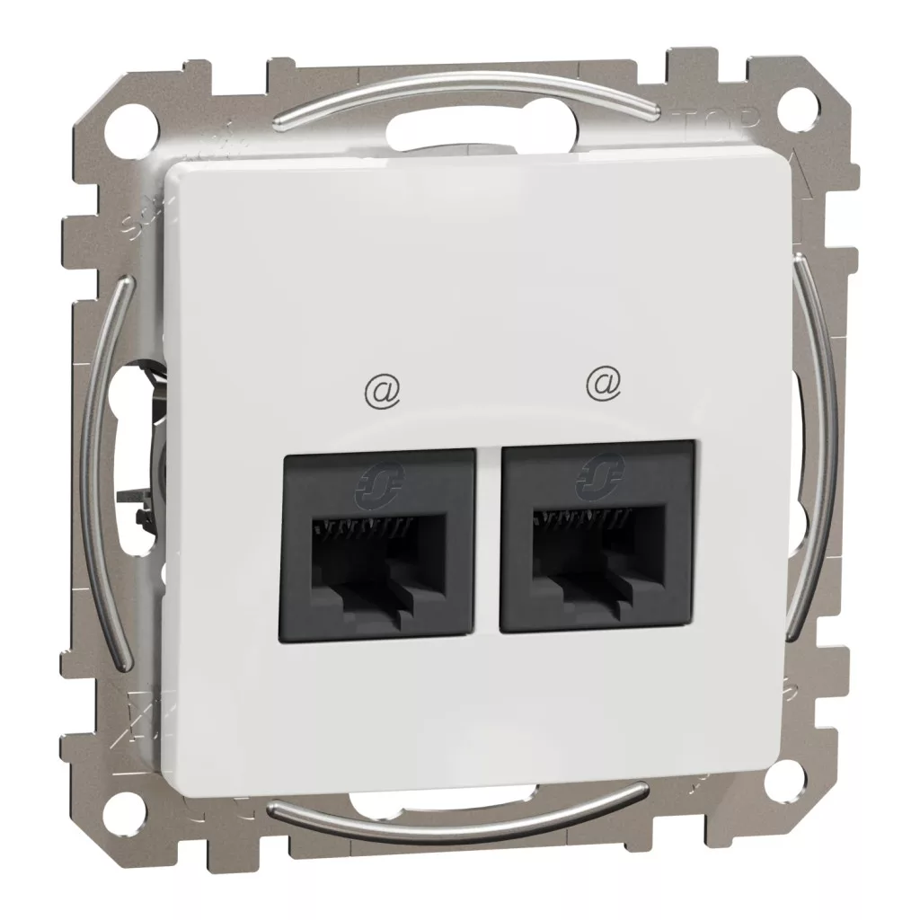 Schneider Electric SDD111467 Informatikai csatlakozóaljzat 2xRJ45, Cat6A UTP, fehér burkolattal, keret nélkül, csavaros bekötés (Sedna Design / Elements)