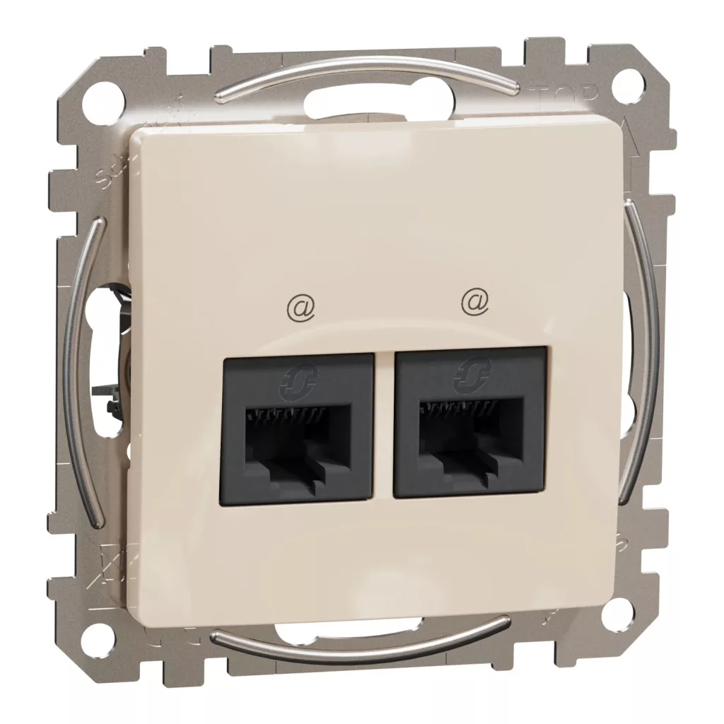 Schneider Electric SDD112467 Informatikai csatlakozóaljzat 2xRJ45, Cat6A UTP, bézs burkolattal, keret nélkül, csavaros bekötés (Sedna Design / Elements)