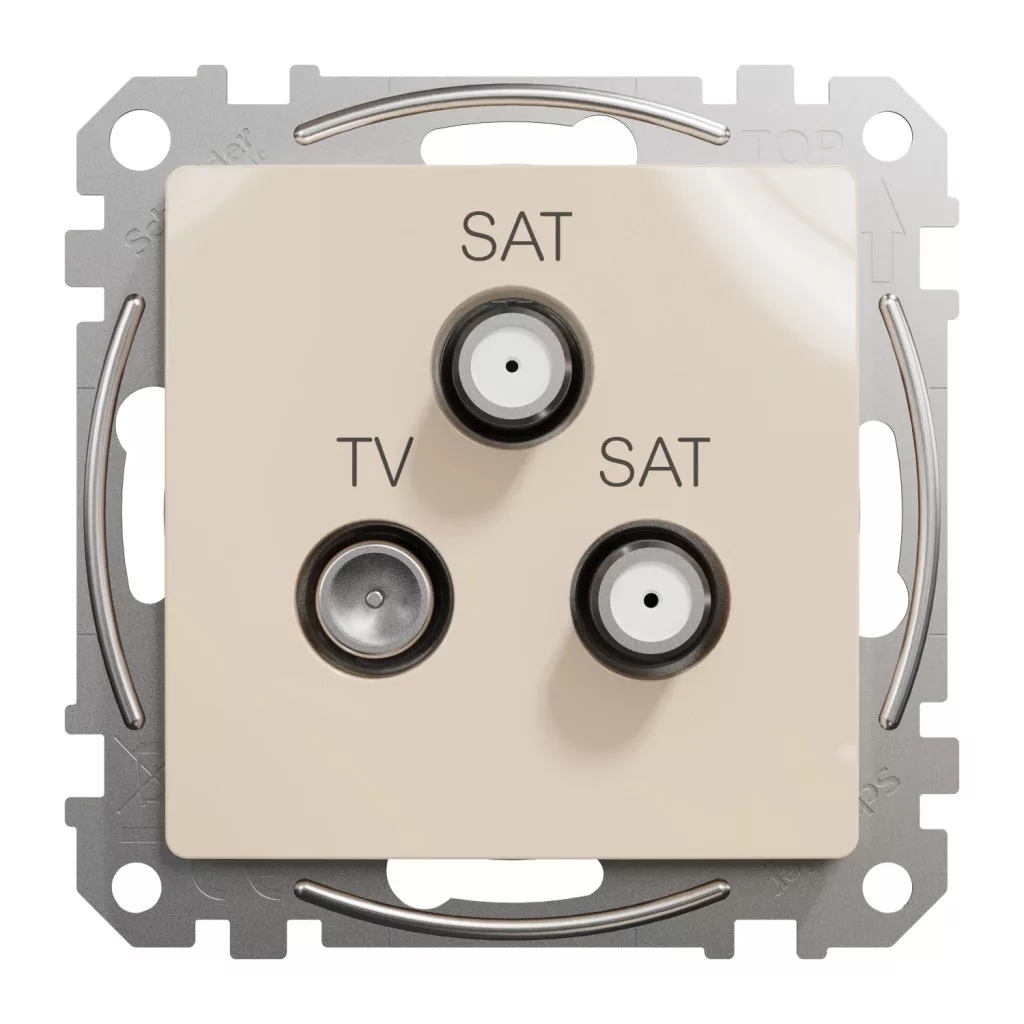 Schneider Electric SDD112481S végzáró TV-SAT-SAT csatlakozóaljzat 4 dB(TV) 1 dB(SAT) , bézs burkolattal, keret nélkül, csavaros bekötés (Sedna Design / Elements)