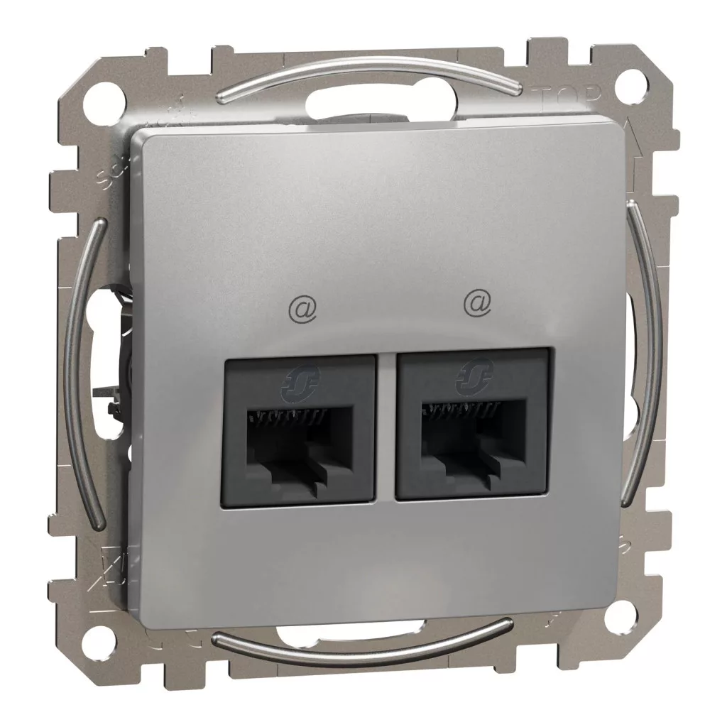 Schneider Electric SDD113467 Informatikai csatlakozóaljzat 2xRJ45, Cat6A UTP, alumínium burkolattal, keret nélkül, csavaros bekötés (Sedna Design / Elements)