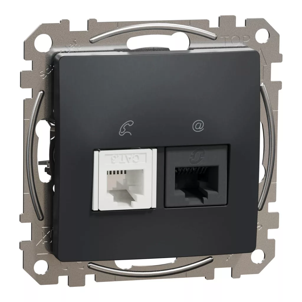 Schneider Electric SDD114468 kombinált csatlakozóaljzat 1xRJ45 + 1xRJ11 (informatikai UTP cat6 + telefon) antracit burkolattal, keret nélkül, csavaros bekötés (Sedna Design / Elements)