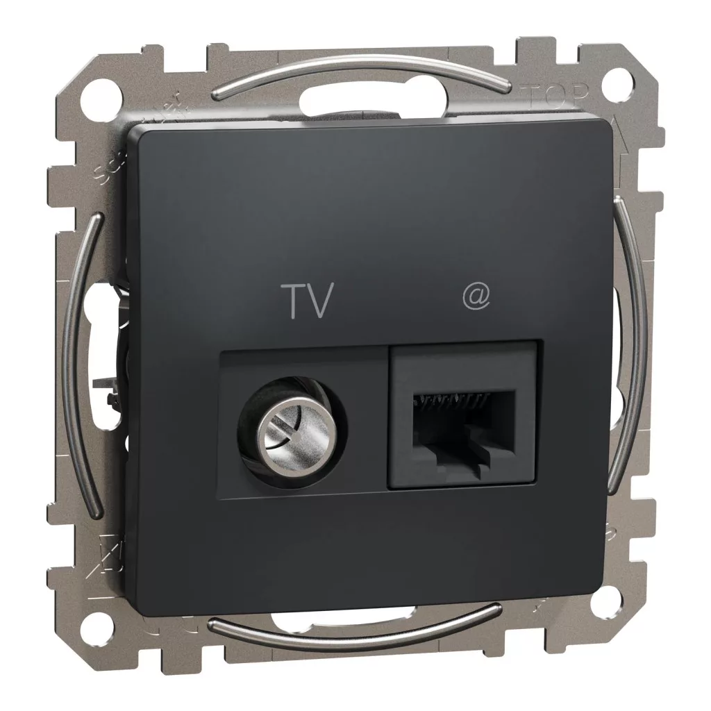 Schneider Electric SDD114469T kombinált csatlakozóaljzat 1xRJ45 + 1xTV (informatikai UTP cat6 + végzáró 4dB) antracit burkolattal, keret nélkül, csavaros bekötés (Sedna Design / Elements)