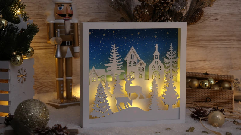 Tracon CHRAFWW LED karácsonyi tájkép, fa, elemes Timer 6+18h, 12LED, meleg fehér ( 3000K ) színhőmérséklettel, 2xAA ( CHRAFWW )