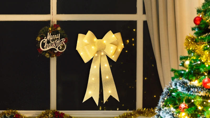 Tracon CHRBOG25WW LED karácsonyi masni, arany, elemes (X24028), Timer 6+18h,25LED, 3000K, 2xAA