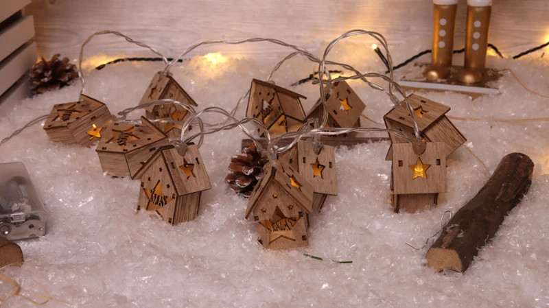 Tracon CHRSH10WW LED karácsonyi lánc,házikó,fa,elemes Timer 6+18h,10LED, 3000K, 2xAA