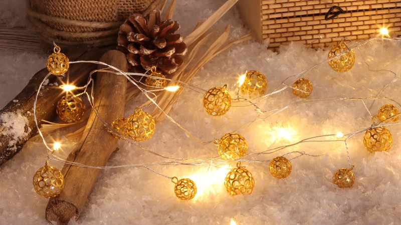Tracon CHRSTBGM20WW LED karácsonyi lánc,mini gömb,elemes Timer 6+18h,20LED, meleg fehér ( 3000K ) színhőmérséklettel, 2xAA ( CHRSTBGM20WW )