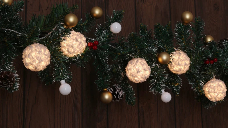 Tracon CHRSTBW10WW LED karácsonyi lánc, gömb, fehér, elemes Timer 6+18h,10LED, meleg fehér ( 3000K ) színhőmérséklettel 2xAA ( CHRSTBW10WW )