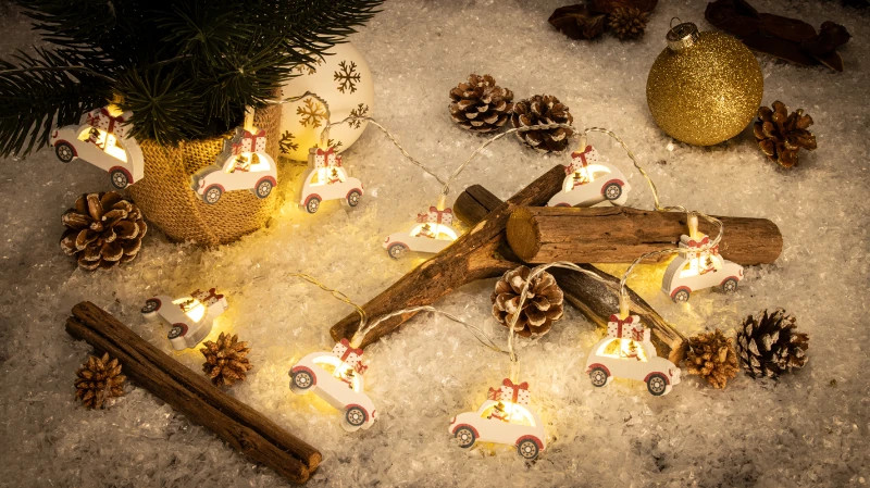 Tracon CHRSTCS10WW LED karácsonyi lánc,autó,fa,elemes (X24014), Timer 6+18h, 10LED, 3000K, 2xAA