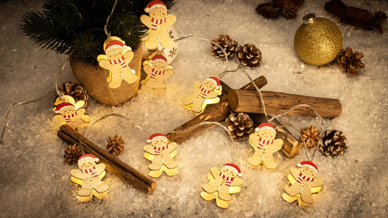 Tracon CHRSTGM10WW LED karácsonyi lánc, mézeskalács, fa, elemes (X24018), Timer 6+18h, 10LED, 3000K, 2xAA