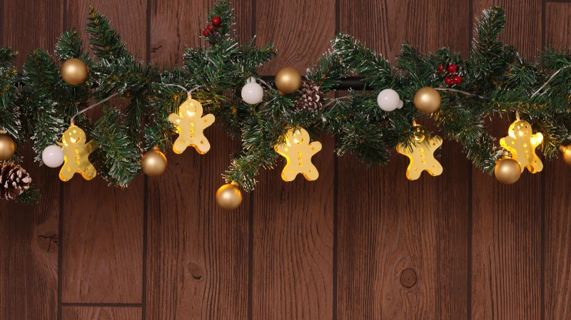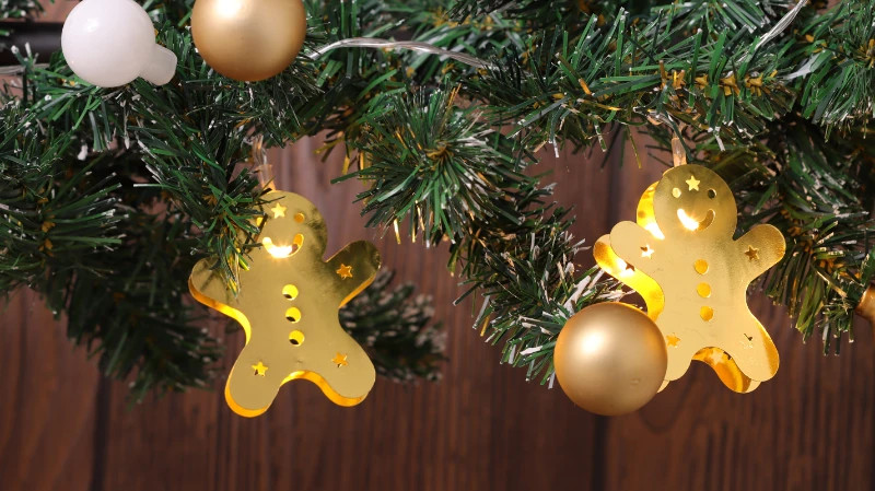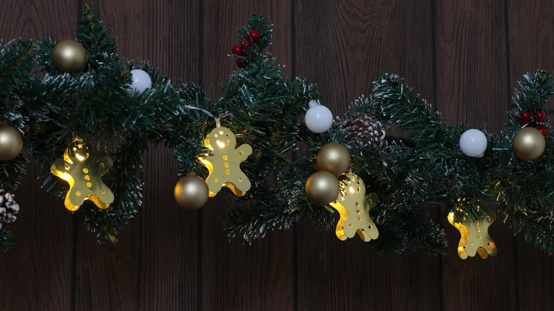 Tracon CHRSTGMGM10WW LED karácsonyi lánc, mézeskalács, fém, elemes Timer 6+18h,10LED, meleg fehér ( 3000K ) színhőmérséklettel, 2xAA ( CHRSTGMGM10WW )