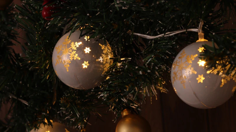 Tracon CHRSTSFBW10WW LED karácsonyi lánc, gömb, hópehely, fehér, elemes Timer 6+18h,10LED, meleg fehér ( 3000K ) színhőmérséklettel, 2xAA ( CHRSTSFBW10WW )
