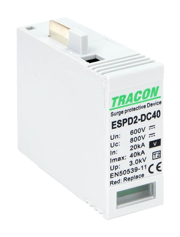 Tracon ESPD2-DC40-600VO T2 DC típusú V túlfeszültség levezető betét 600V Ucpv: 800V, In:20kA, Imax:40kA, Up:2,6kV, Var