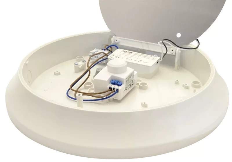 Tracon EVAS14NW, Műanyag búrás falon kívüli LED lámpatest mozgásérzékelővel 100-240V,50Hz,14W,1000lm,4000K,1-8m,10s-12m,IP54,EEI=A