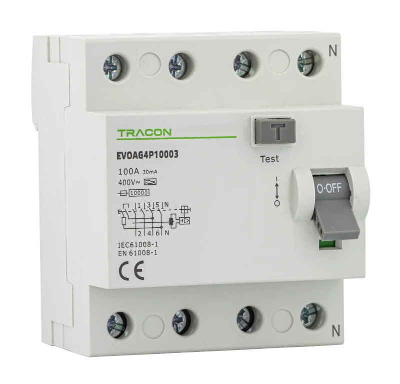Tracon EVOAG4P2503 Áram-védőkapcsoló, 4 pólusú 25A, 30mA, 10kA, A