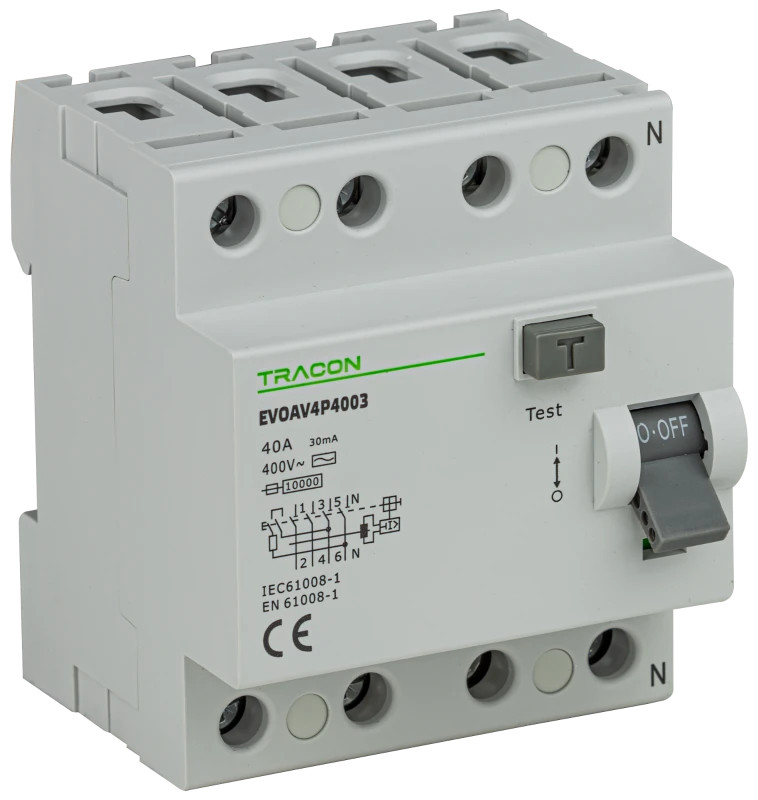 Tracon EVOAV4P10003 Áram-védőkapcsoló, 4 pólusú 100A, 30mA, 10kA, AC