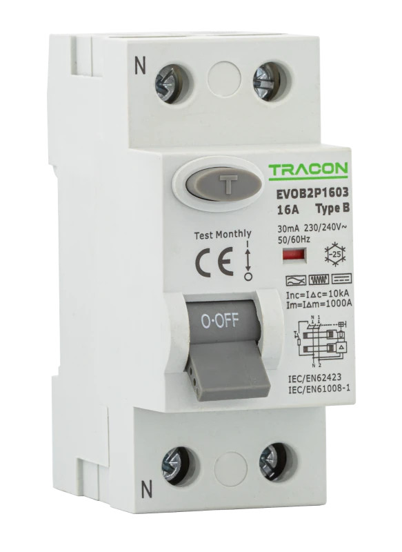 Tracon EVOB2P2503 Áram-védőkapcsoló, 2 pólusú 25A, 30mA, 10kA, B