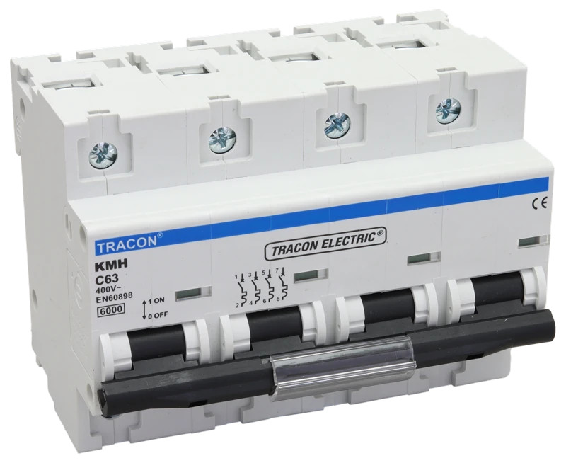 Tracon KMH-4125, Kismegszakító, nagyáramú, 4 pólus, C karakterisztika 125A, 6kA