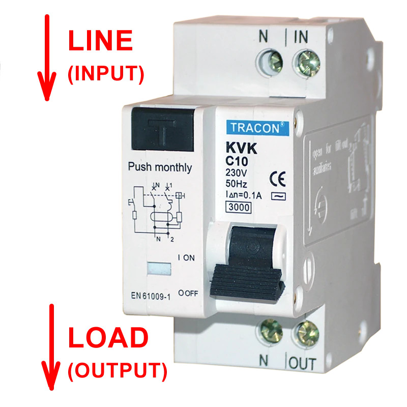 Tracon KVK-20/03, Kombinált védőkapcsoló, 2P, 2 modul, C karakterisztika 20A, 30mA, 3kA, AC, E3