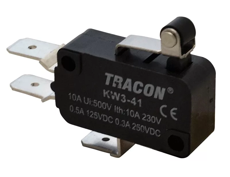 Tracon KW3-41 Helyzetkapcsoló, mikro, karos-görgős 1×CO 10(3)A/230V, 15mm, 6,3x0,8 mm, IP00