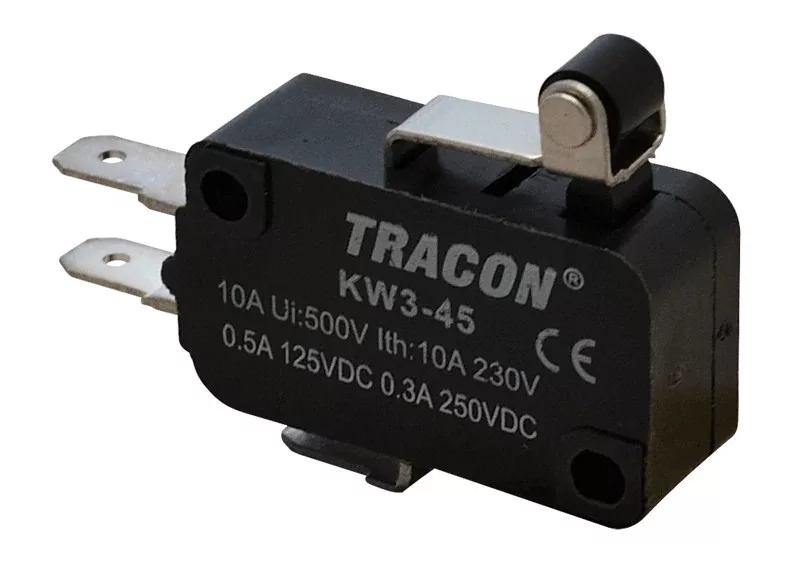 Tracon KW3-45 Helyzetkapcsoló, mikro, karos-görgős 1×CO 10(3)A/230V, 15mm, 4,8x0,8 mm, IP00