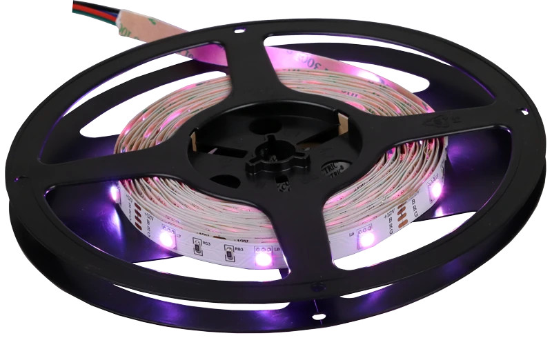 Tracon LED-SZ24-144-RGB LED szalag beltéri (IP20) 14,4 W/m teljesítménnyel, 1440lm/m, RGB-s szinváltós, 24V DC, 10mm széles, 60 LED/m SMD LED, 120°
