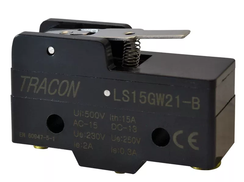 Tracon LS15GW21-B Helyzetkapcsoló, rugószáras 1×CO, 2A/230V AC, 17mm, IP00