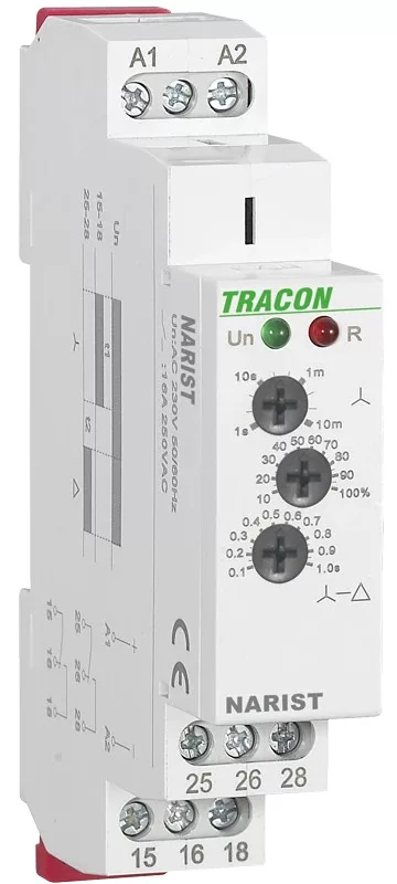 Tracon NARIST Csillag-delta időrelé AC/DC12-240V, t1:0,1s-10min t2:0,1s-1s 16A/AC1, 250VAC/24VDC