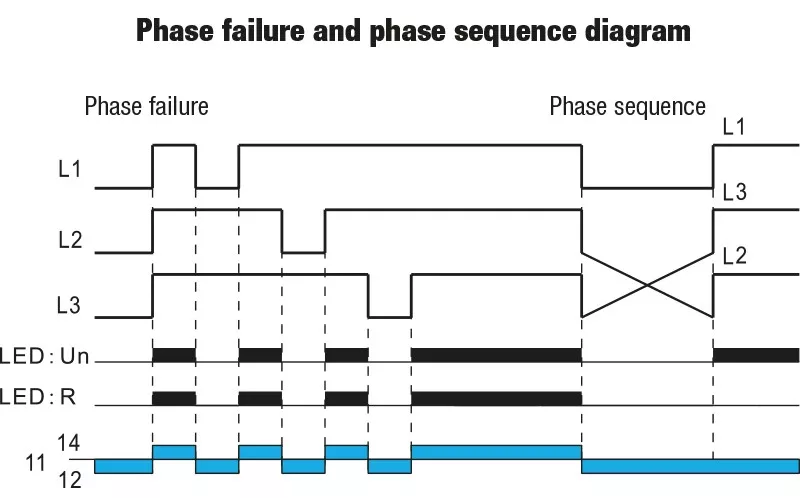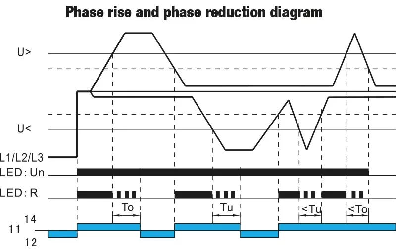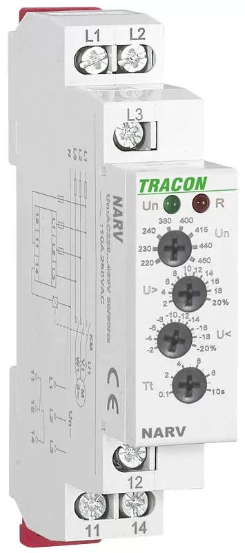 Tracon NARV Feszültségfigyelő relé 3 fázisra AC 220-460V, U> U< = +/-2-20%, t=0,1-10s, Asymm 8%