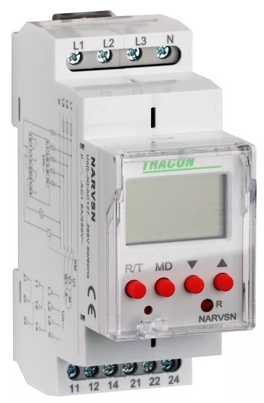 Tracon NARVSN Feszültségfigyelő relé 3 fázisra kijelzővel AC 230V L-N, U>,< 70-400V, 2CO 8AVAC (AC1)