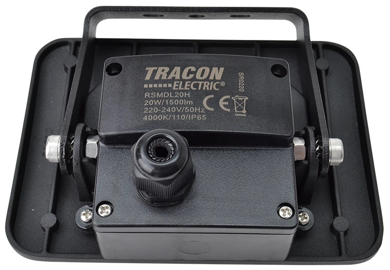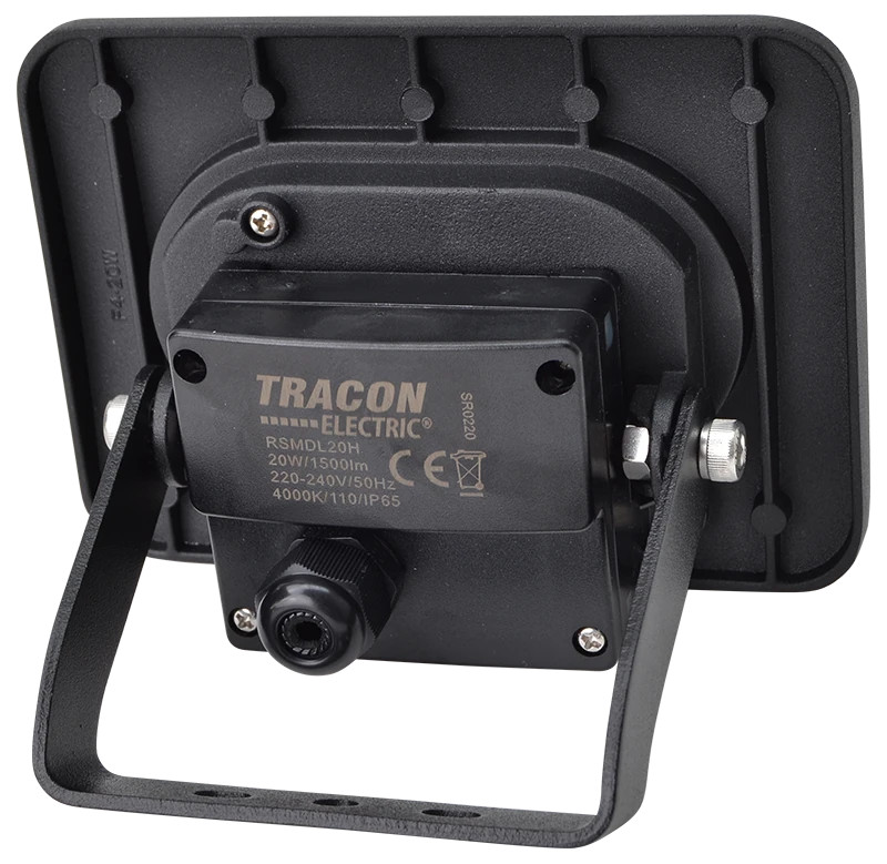 Tracon RSMDL20H, LED fényvető beépített bekötődobozzal (kábel nélkül),fekete 220-240V AC, 20W, 4000K, IP65, 1500lm,