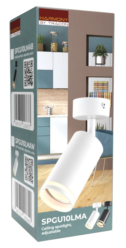 Tracon SPGU10LMAW Mennyezeti állítható spot lámpatest, fehér 100-240VAC, 50Hz, 1xGU10, max.35W