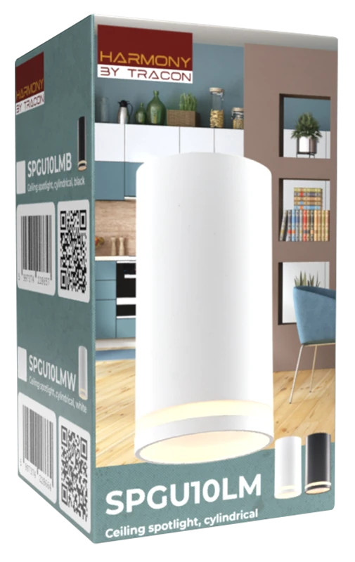 Tracon SPGU10LMB Mennyezeti spot lámpatest, hengeres, fekete 100-240VAC, 50Hz, 1xGU10, max.35W