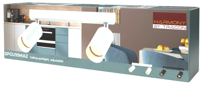 Tracon SPGU10MA2B Mennyezeti állítható spot lámpatest, fekete 100-240VAC, 50Hz, 2xGU10, max.2x35W