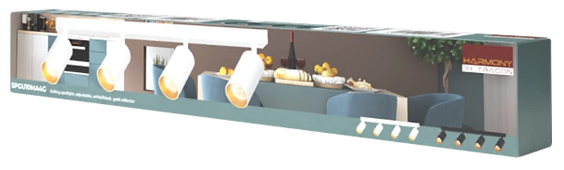 Tracon SPGU10MA4GB Mennyezeti állítható spot lámpatest, fekete, arany reflektor 100-240VAC, 50Hz, 4xGU10, max.4x35W