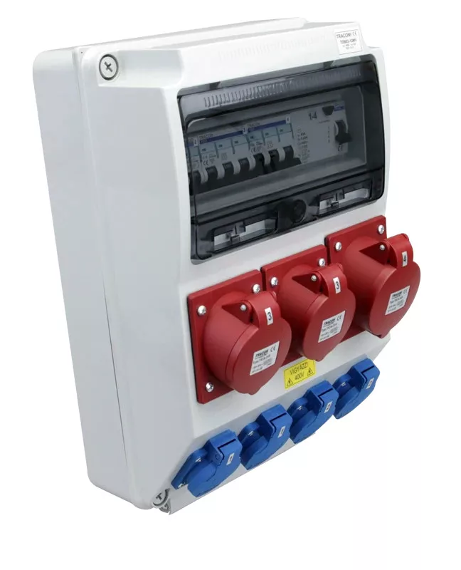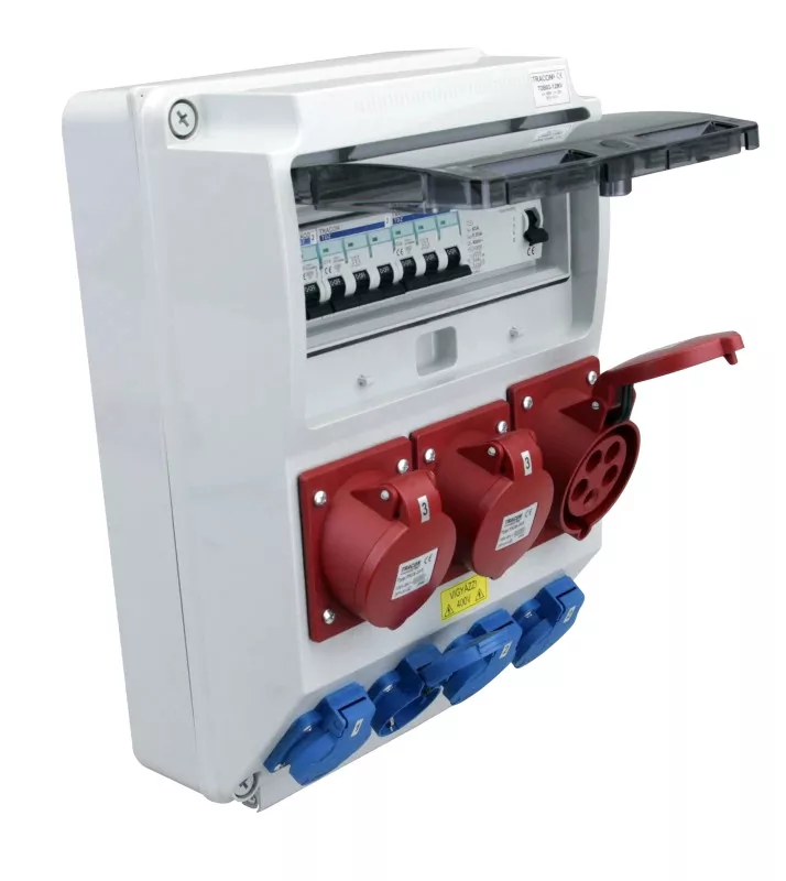 Tracon TDB03-12MV Csatlakozó doboz védelemmel, vezetékezett, készre szerelt Prot.:RCCB,MCB,Out:4×SCHUKO+2×16A(3P+N+E)+1×32A(3P+N+E)