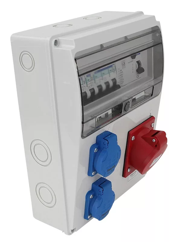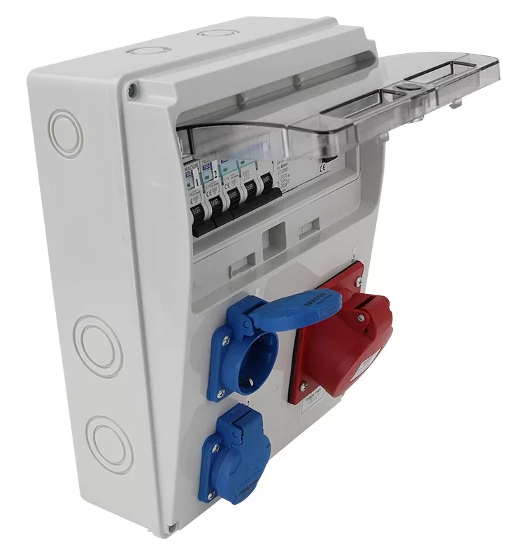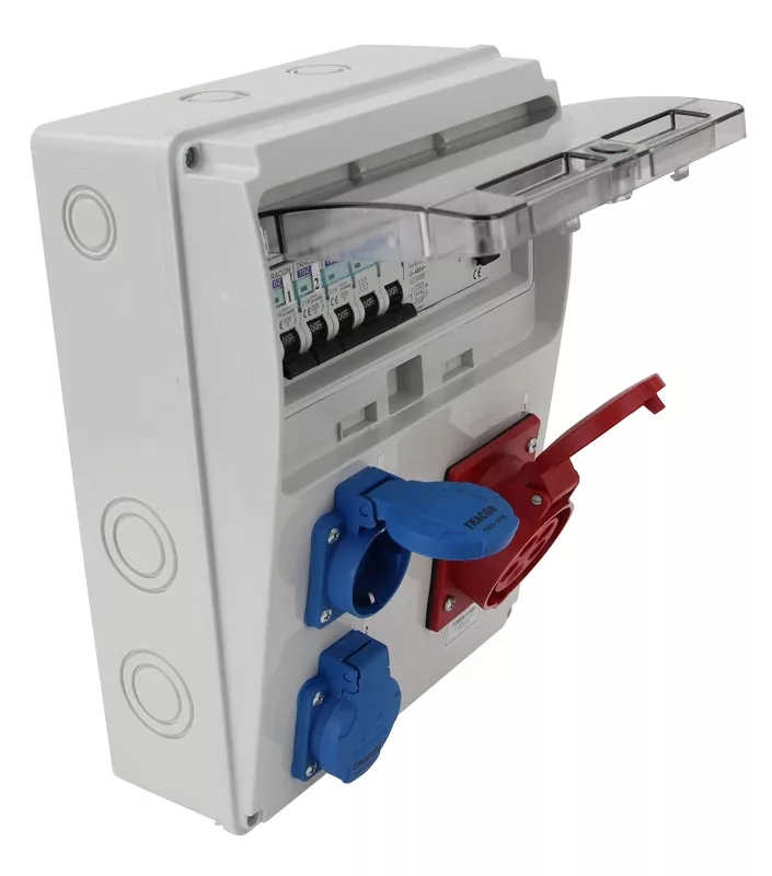 Tracon TDB04-11MV Csatlakozó doboz védelemmel, vezetékezett, készre szerelt Prot.: RCCB, MCB, Out: 2×SCHUKO+1×16A(3P+N+E)