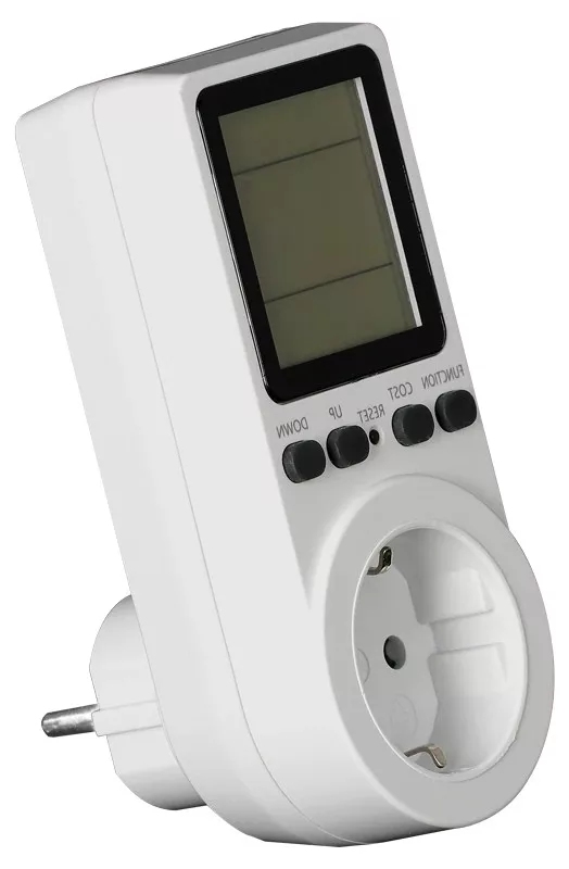 Tracon TVOD02 LCD kijelzőjű dugaszolható fogyasztásmérő 230 V, 50 Hz, 16 A, 3680 W, V,A,W,kWh,Hz,cosfi,cost