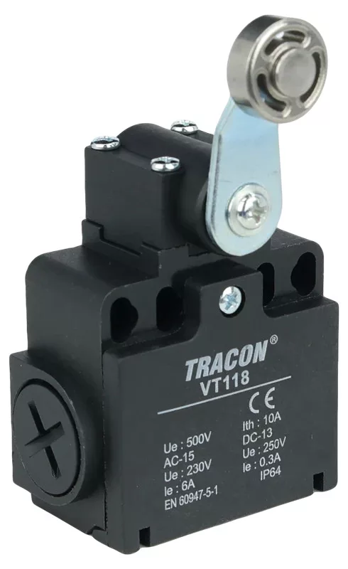 Tracon VT118 Helyzetkapcsoló, lengőkar-görgö 1×NO+1×NC, 6A/230V AC, 28mm, IP65