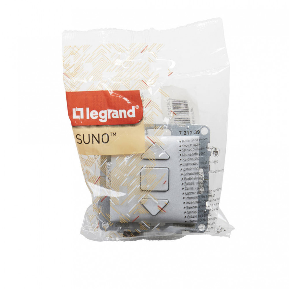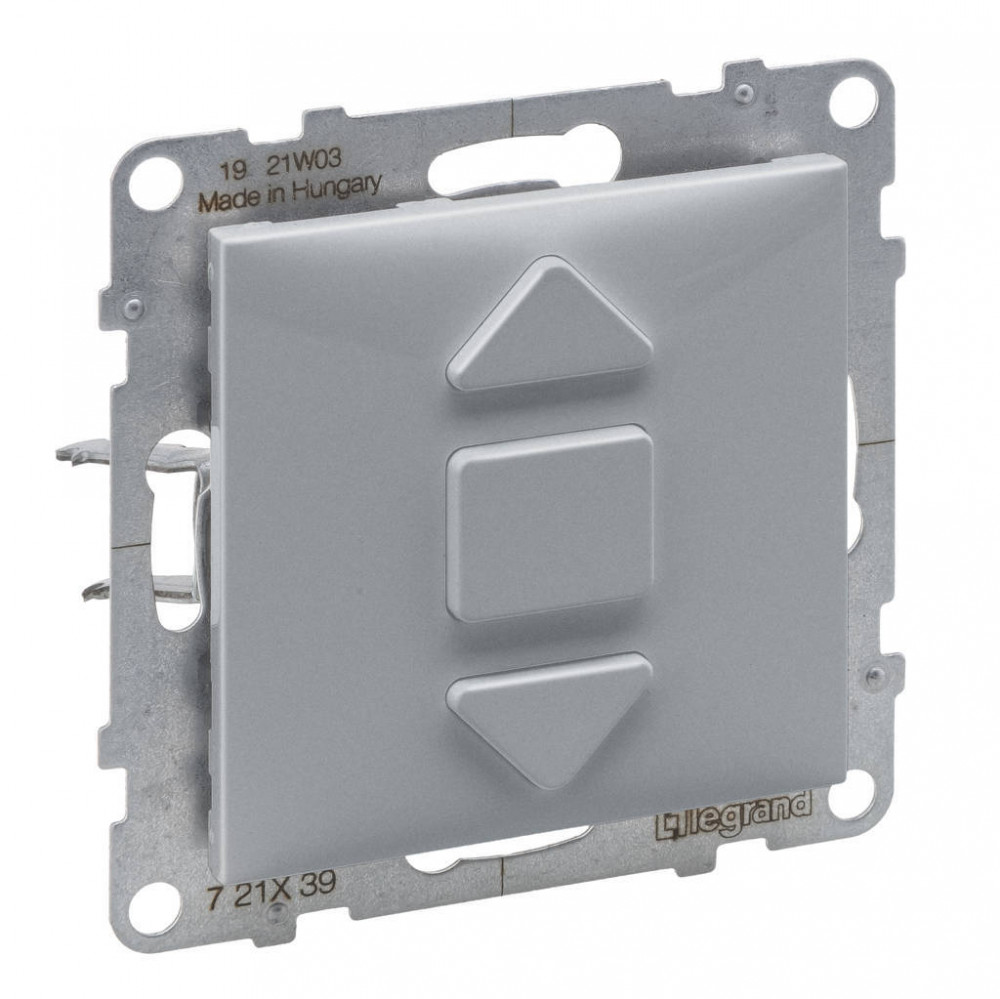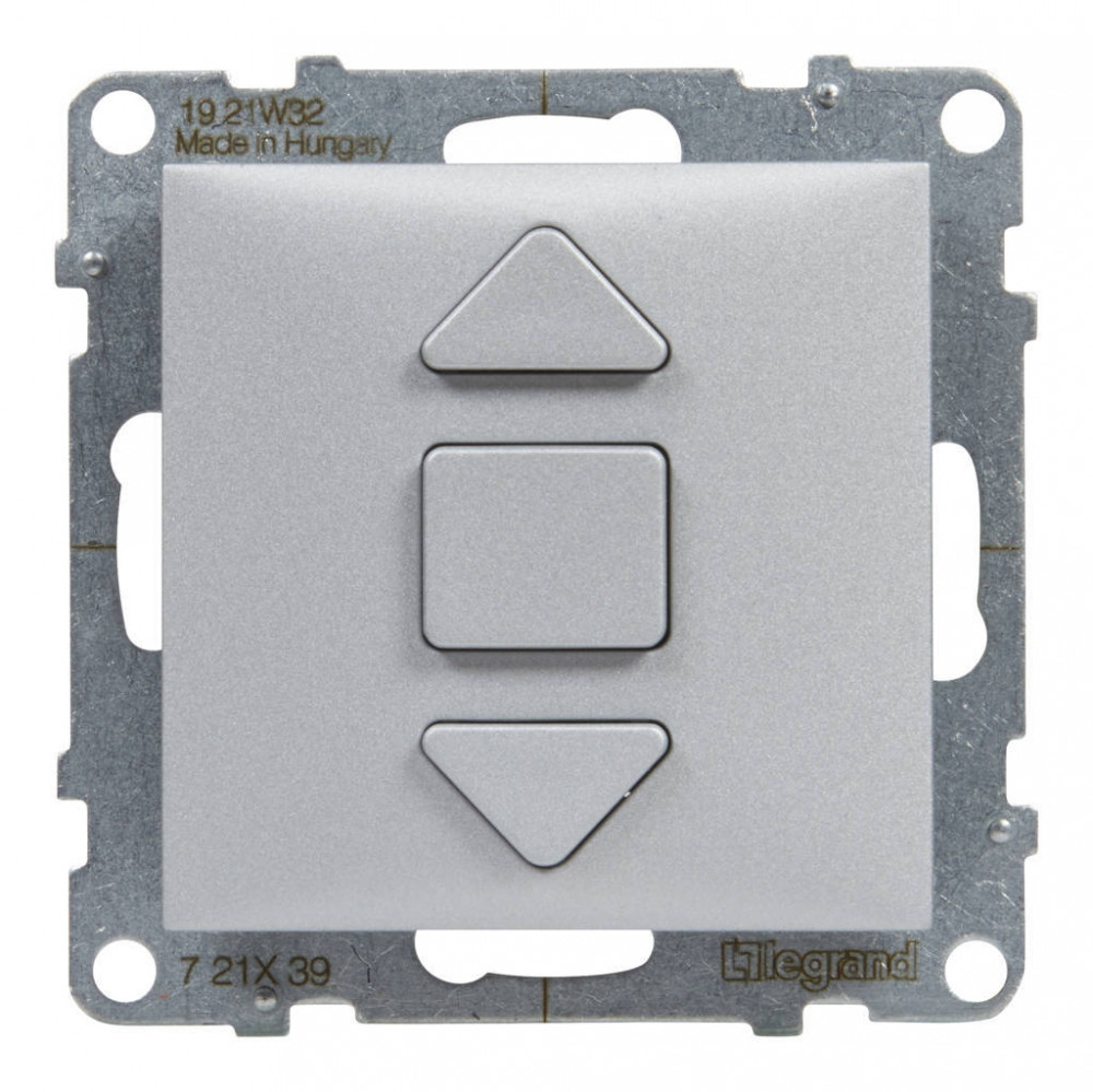 ÚJRACSOMAGOLT Legrand SUNO 721339 Redőnykapcsoló, alumínium burkolattal, rugós bekötés, keret nélkül, süllyesztett, 6A 250V IP20