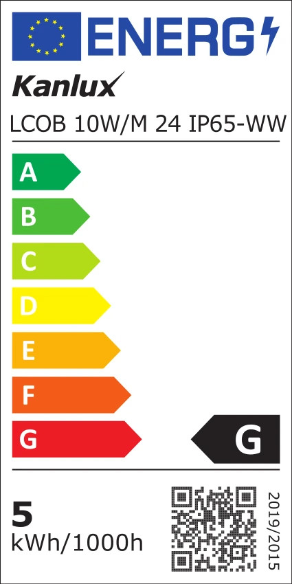 Kanlux 33352 LCOB 10W/M 24 IP65-WW LED szalag kültéri 10W/m teljesítménnyel, 860lm, 3000K melegfehér színhőmérséklettel, 24V DC, 8,2mm széles - 5fm/db