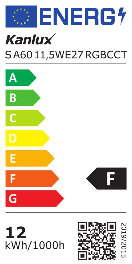 Kanlux 33642 S A60 11,5WE27 RGBCCT WiFi vezérlésű SMART LED RGB fényforrás, E27 foglalat, 1055 lm, 11,5W teljesítmény, 15000 h élettartammal, 220-240 V, 2700-6500 K