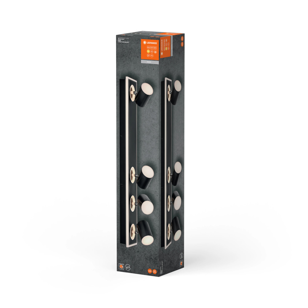 A(z) LEDVANCE DECOR SPOT MARS BLACK mennyezetre szerelhető állítható spot lámpatest fekete színben, 4 darab állítható spottal, mindössze 58,5 W fogyasztás mellett 1800 lm fényerőt biztosít.