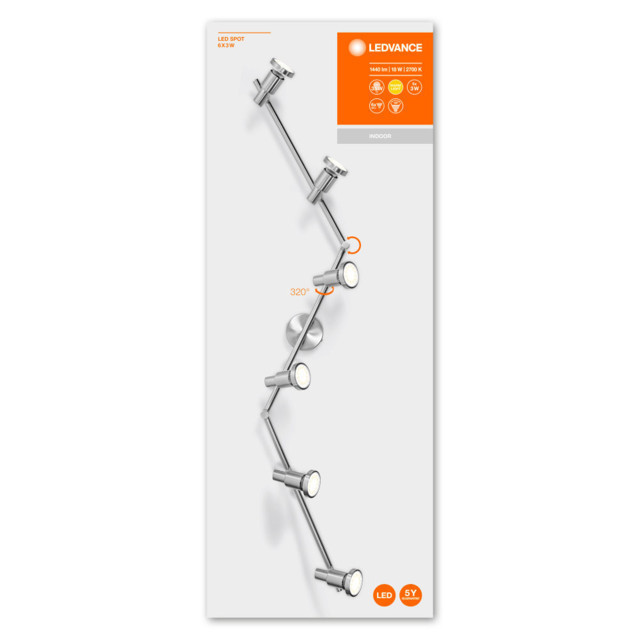 A LEDVANCE LEDVANCE LED Spot GU10 6x3W 2700K, beltéri, szürke mennyezeti SPOT lámpa, 18W, 2700K, 1440lm, IP20 egy LED spot fényforrás, GU10 foglalattal. 2700 K meleg fehér fényével, 3 W teljesítménnyel és 1440 lm fényárammal.