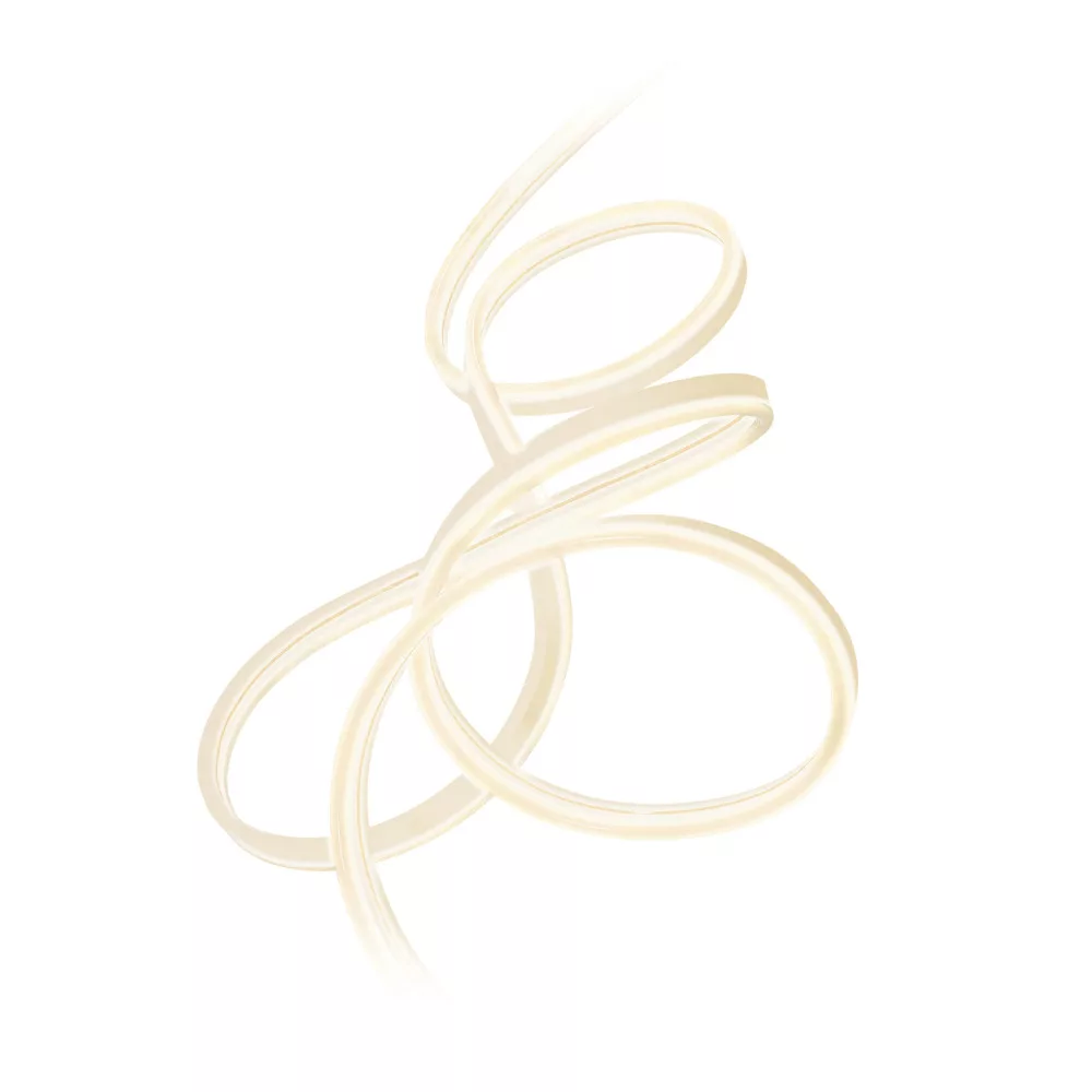 A(z) LEDVANCE NEON FLEX kültéri LED szalag, 19 W fogyasztás mellett 1000 lm fényerőt biztosít, 3 m hosszúsággal, meleg fehér fénnyel, IP44 védelemmel, neon-hatású fénysávval.