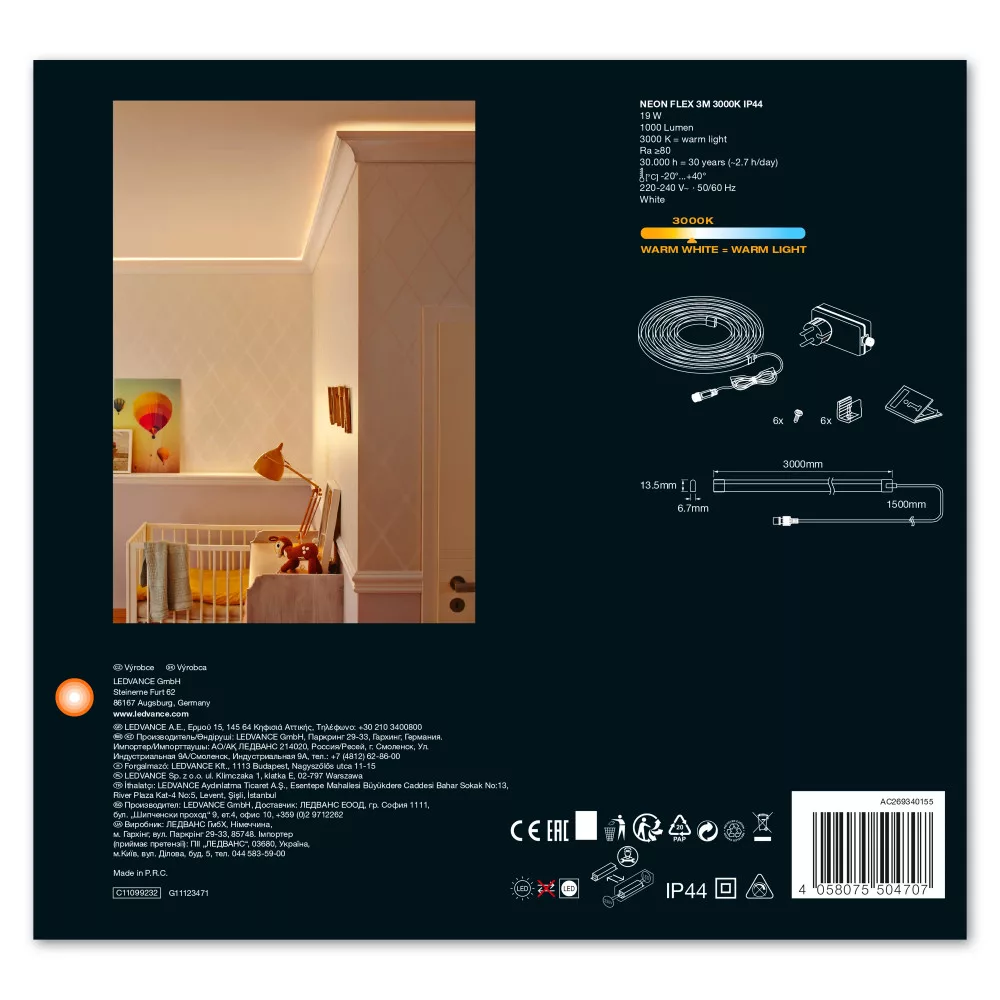 LEDVANCE NEON FLEX kültéri LED szalag 3M, 1000lm, 19W AC, 3000K, IP44, 3000mm x 13,5mm x 6,7mm