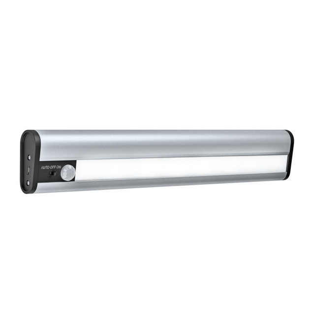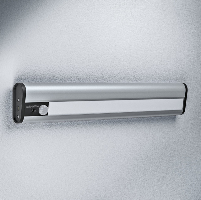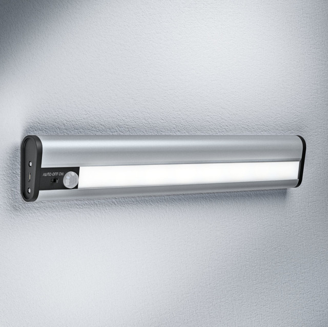 LEDVANCE Linear LED Mobile USB 300, beltéri, ezüst USB 300 ezüst hordozható LED lámpa fény- és mozgásérzékelővel USB-s akkumulátorral, 1.5W, IP20, 4000K, 98lm, hossz: 300mm