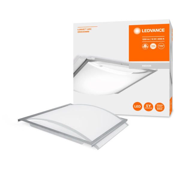 A LEDVANCE LEDVANCE LUNIVE Arc 390x300, beltéri, szürke fali / mennyezeti lámpa, 19W, 4000K, 1200lm, IP20 egy világítási termék. 4000 K meleg fehér fényével.